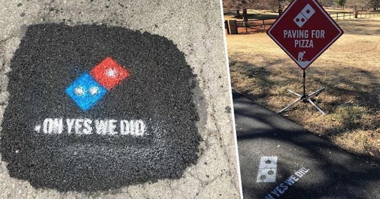 Domino’s Paving for Pizza campaign shrewdly combines promotion of its product with meeting a public need to have potholes repaired. Domino's Pizza